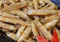 | 二度揚げしたわかさぎに塩を軽くふりました。スナック菓子のような食感で召し上がれます。 |